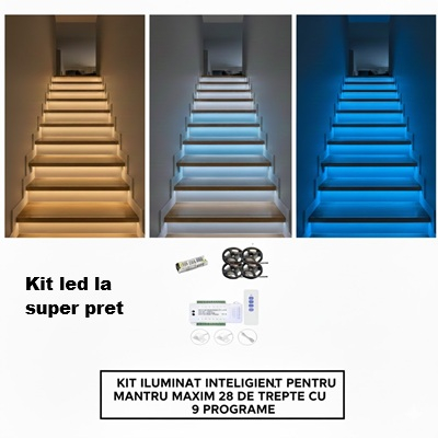 Diverse: Kit inteligent ieftin, kit iluminat inteligent cu telecomanda, kit iluminat scari maxim 28 trepte, kit iluminat inteligent pentru scari